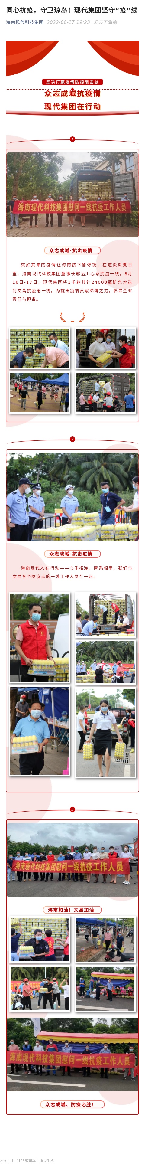 同心抗疫,守衛(wèi)瓊島!現(xiàn)代集團堅守“疫”線