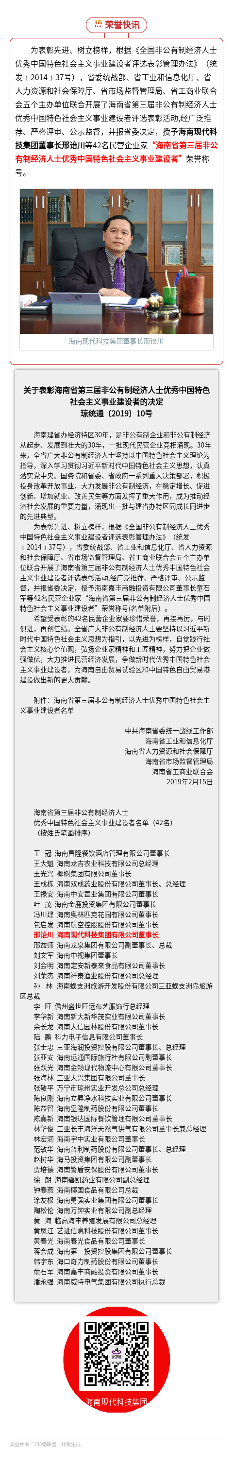 董事長邢詒川榮獲“海南省第三屆非公有制經(jīng)濟人士優(yōu)秀中